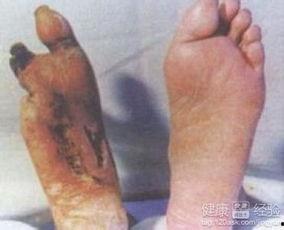 3. 重度烫伤:图片中,脚部皮肤已经严重受损,甚至可以看到肌肉和骨骼。这种烫伤需要立即就医,进行专业治疗。